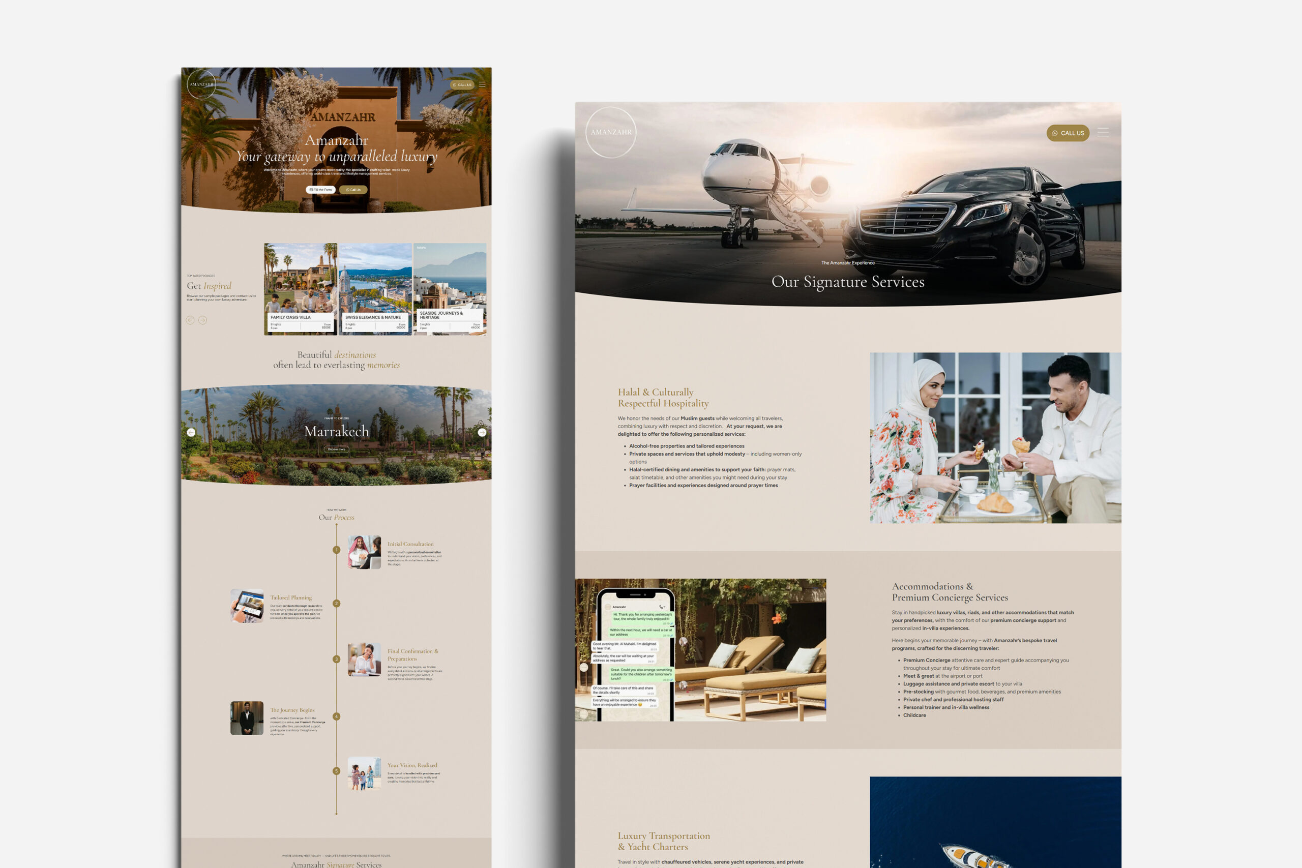Amanzahr is an international travel agency from United Arab Emirates, offering bespoke travel experiences inspired by the timeless values of Islam. The brand operates across a curated selection of destinations, including Ibiza, Marrakech, Abu Dhabi, Zurich and other cosmopolitan cities worldwide.